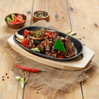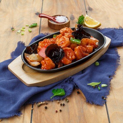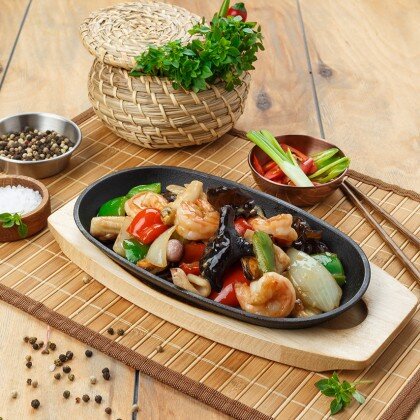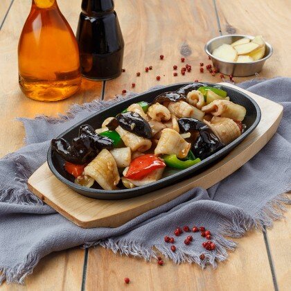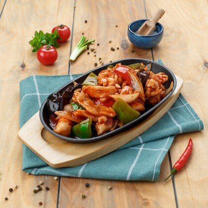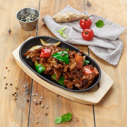Нежное филе утиной грудки, с добавлением сладкого перца и лука, обжариваются в соевом соусе с чесноком